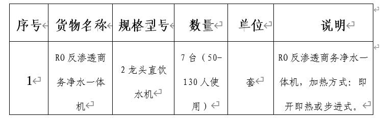 (一)項目內(nèi)容:采購并安裝7臺直飲機,確保設備符合國家飲用水安全標準,運行穩(wěn)定,售后服務完善。